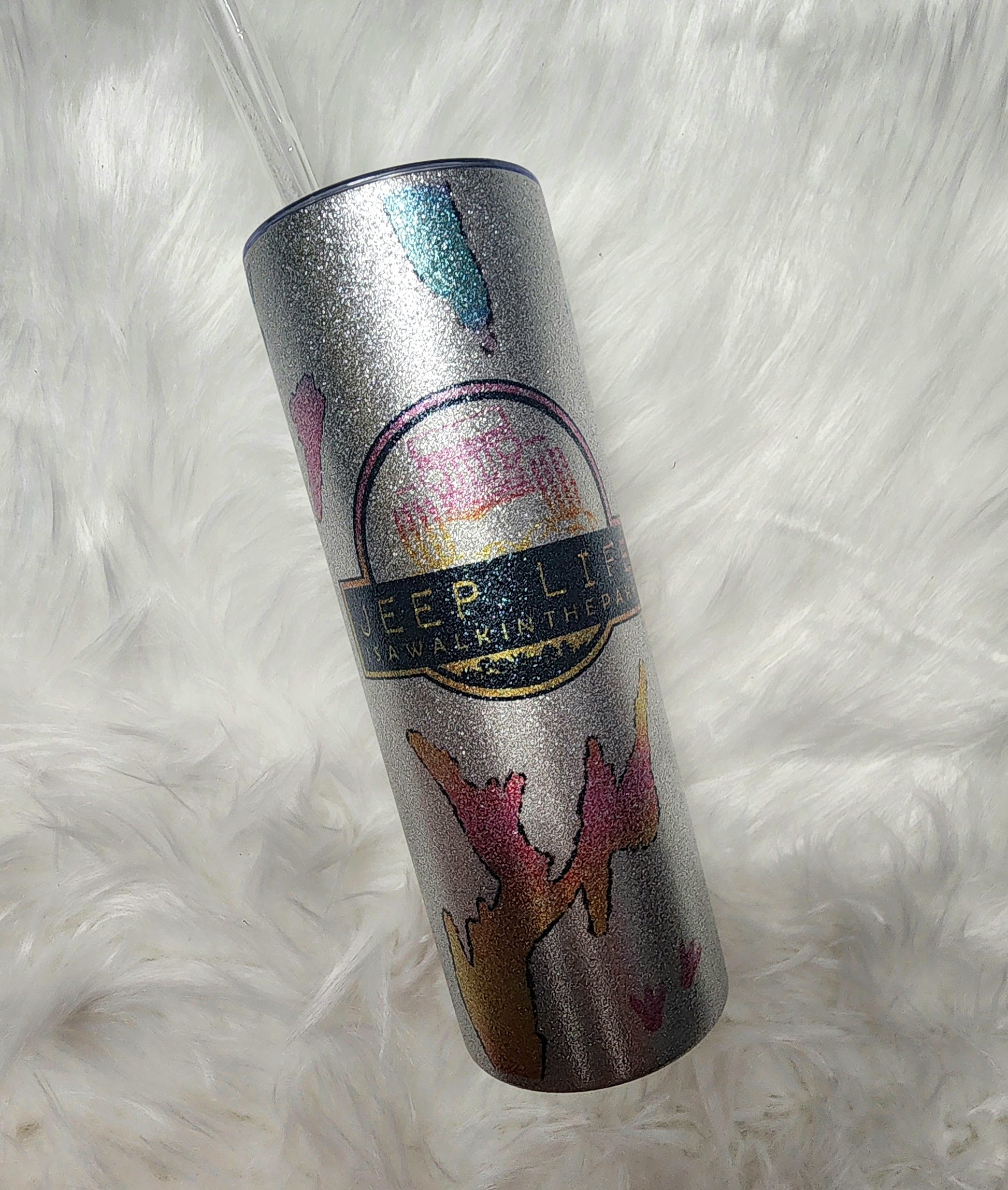 Jurassic Jeep Glitter Tumbler