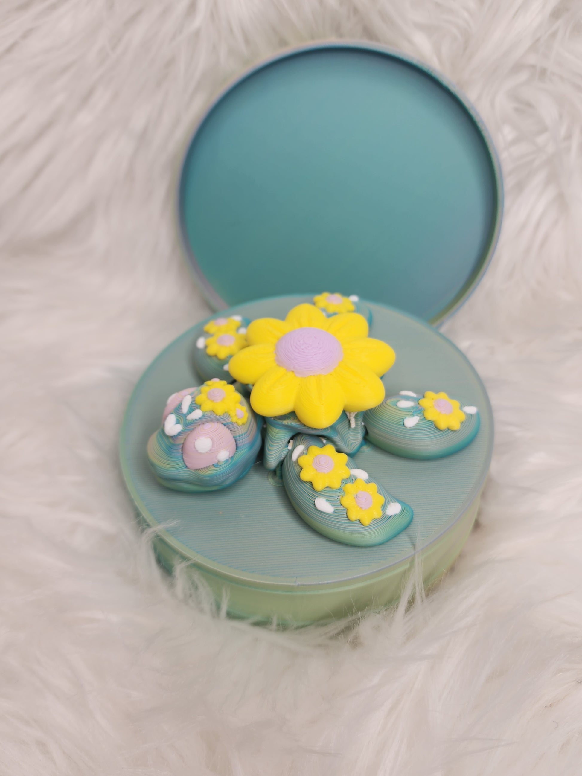 Designed to bend, wiggle, and pose, this turtle is perfect as a fidget toy, desk buddy, or cheerful shelf decoration. The sunflower symbolizes happiness and positivity, making this turtle a beautiful reminder to slow down and enjoy the little things.