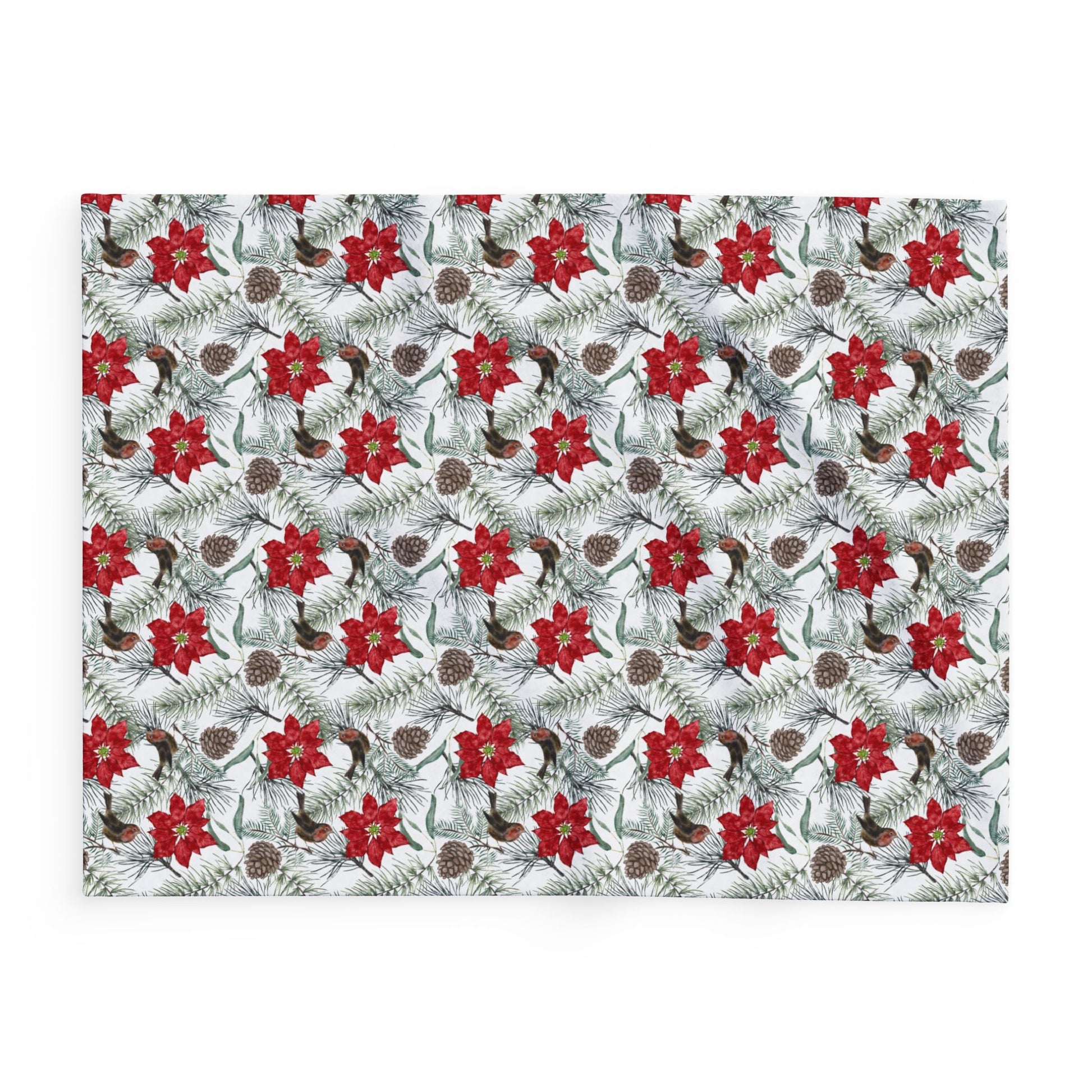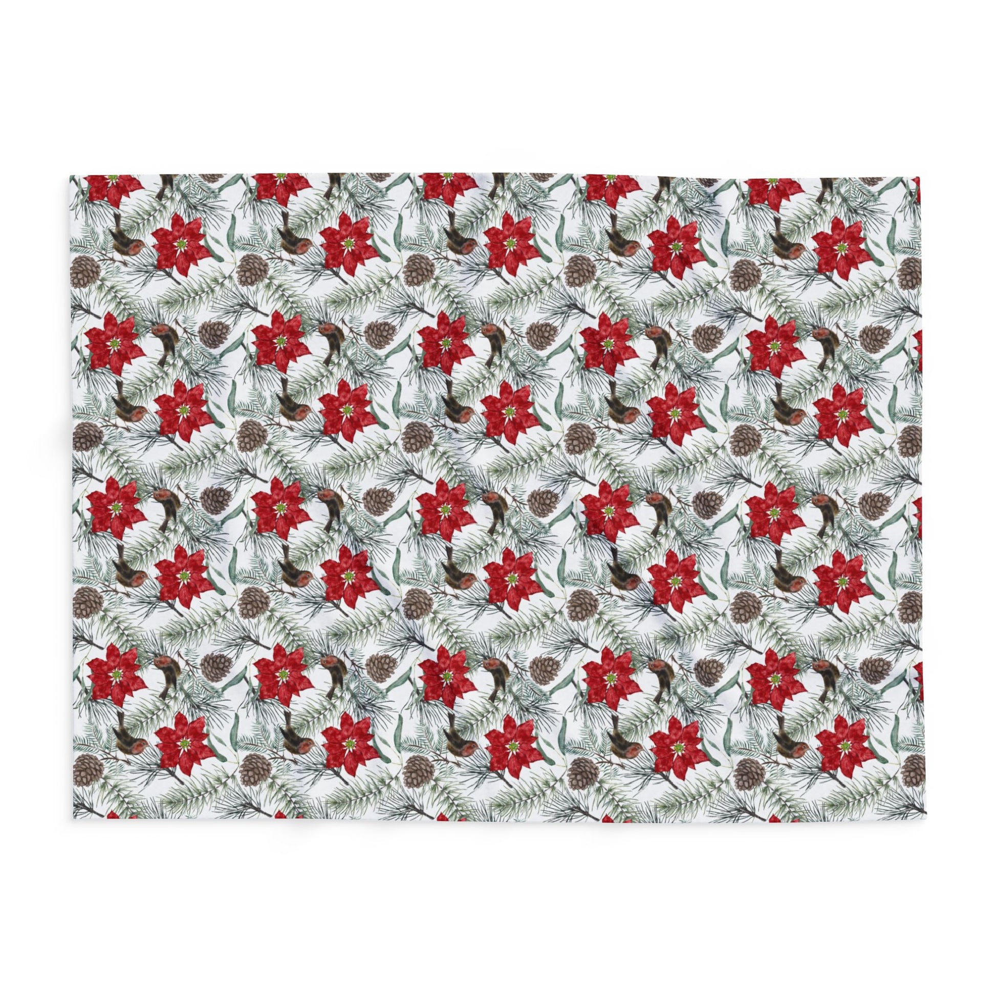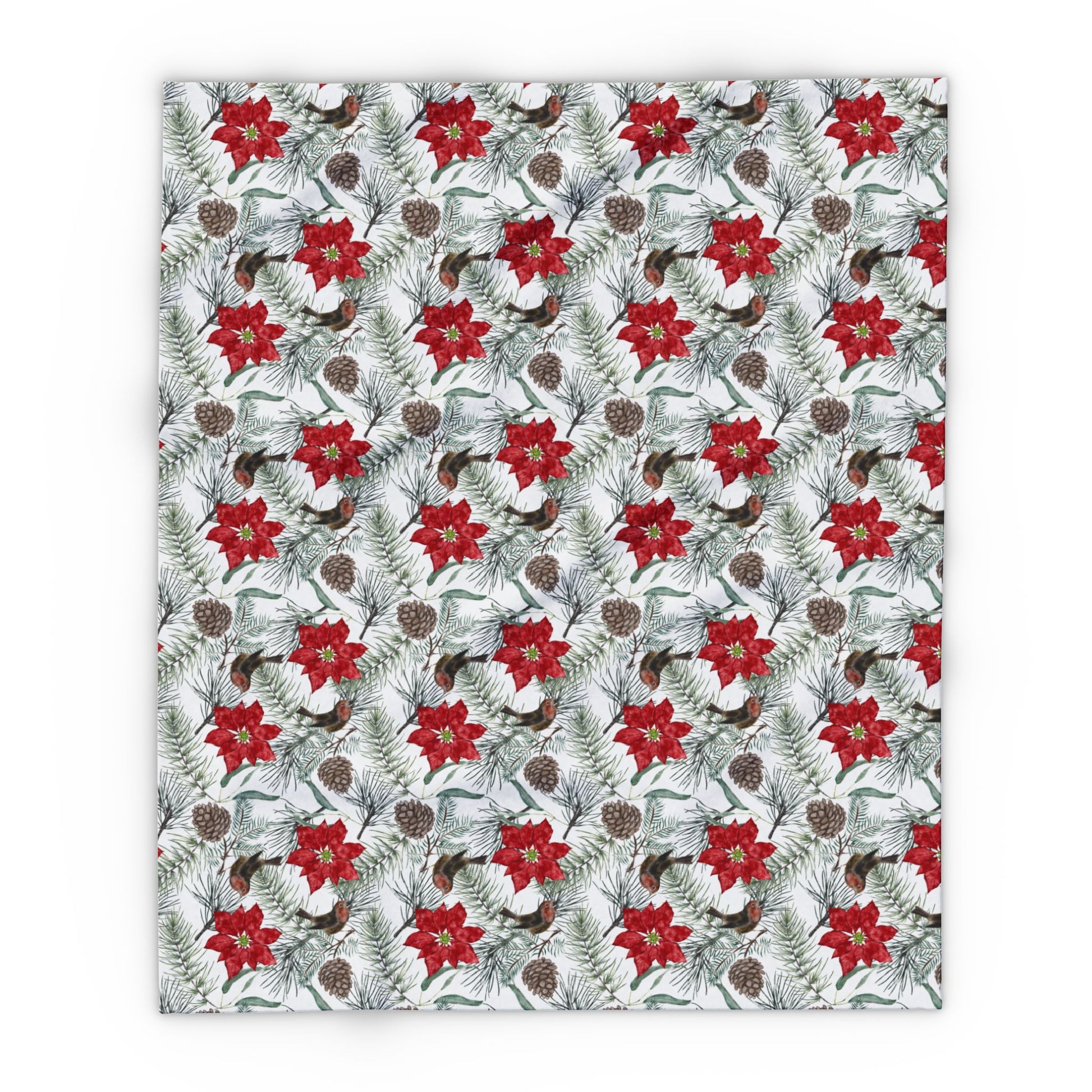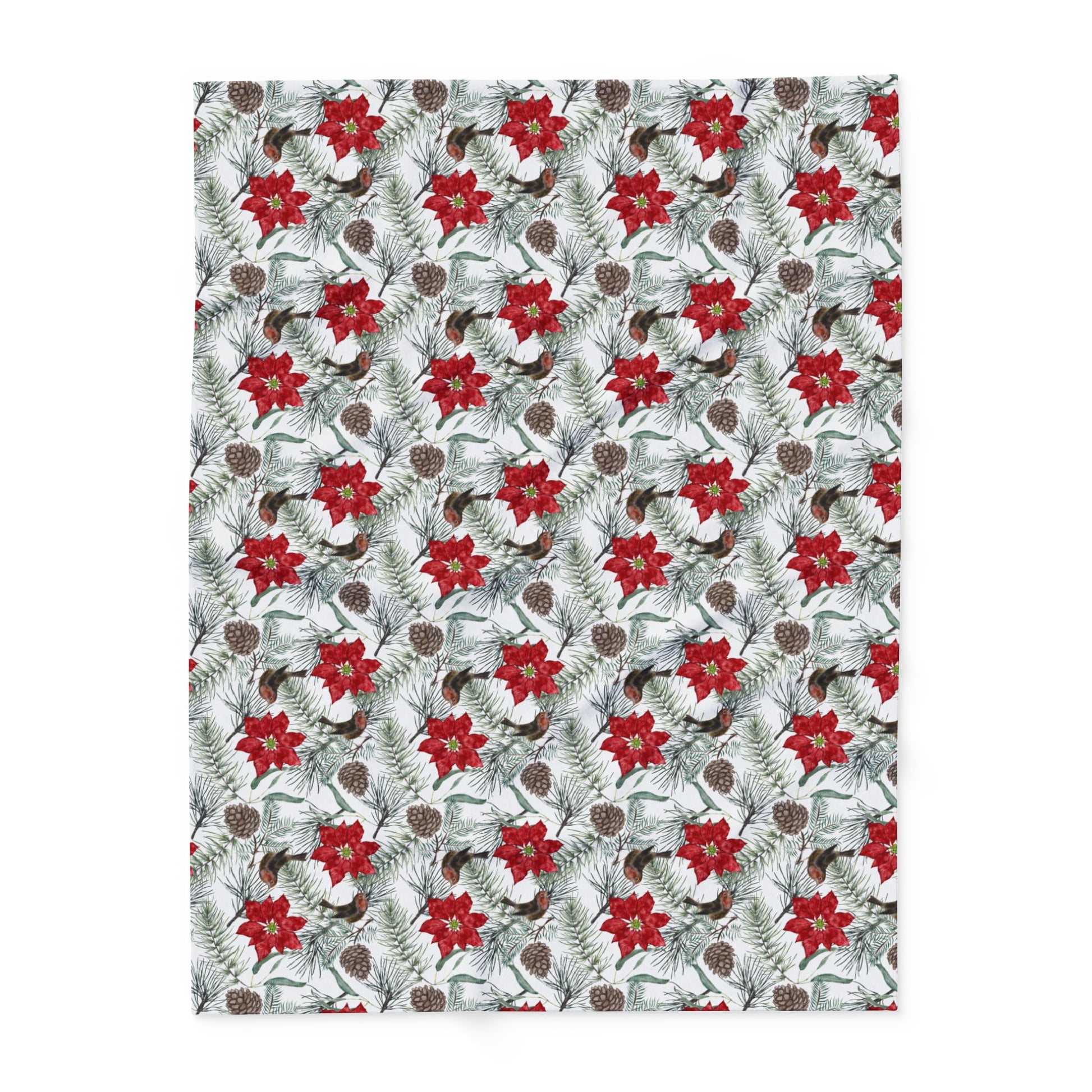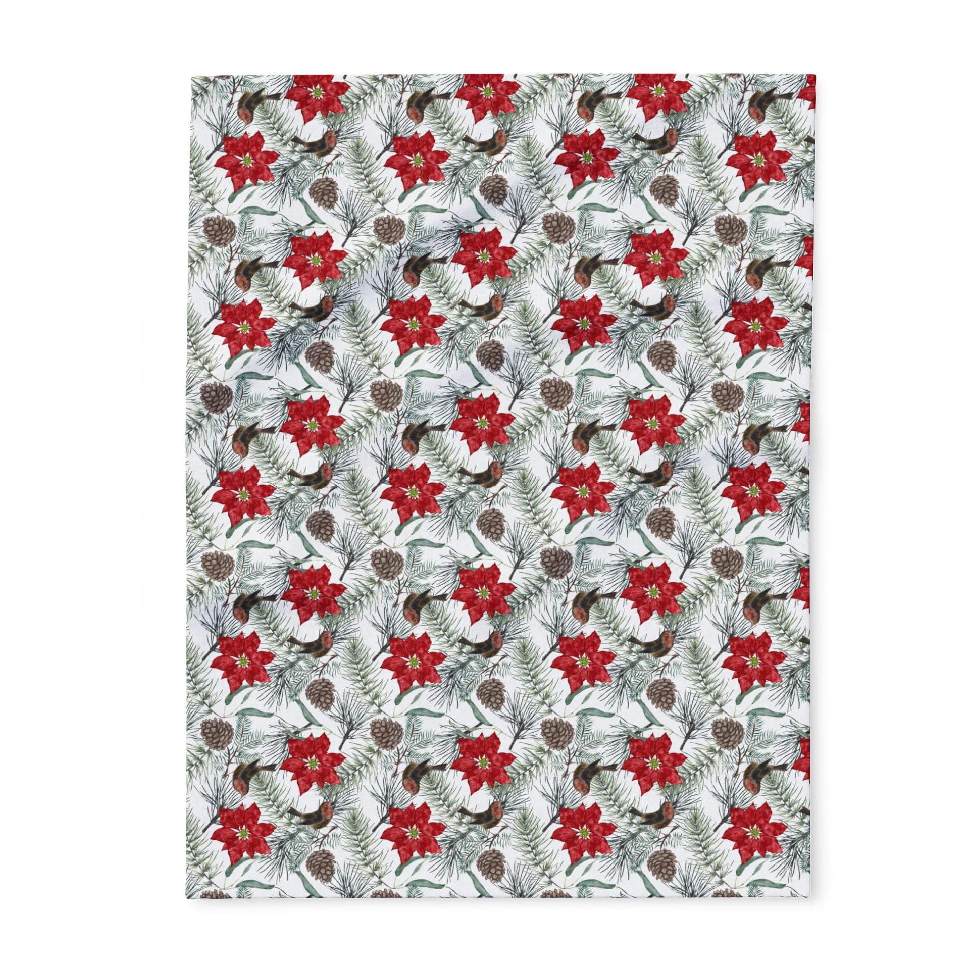 Bring the beauty of the winter forest into your home with our Woodland Noel Blanket. Featuring vibrant red poinsettias, frosted pine branches, natural pinecones, and sweet little birds, this festive throw captures the rustic charm of the season.