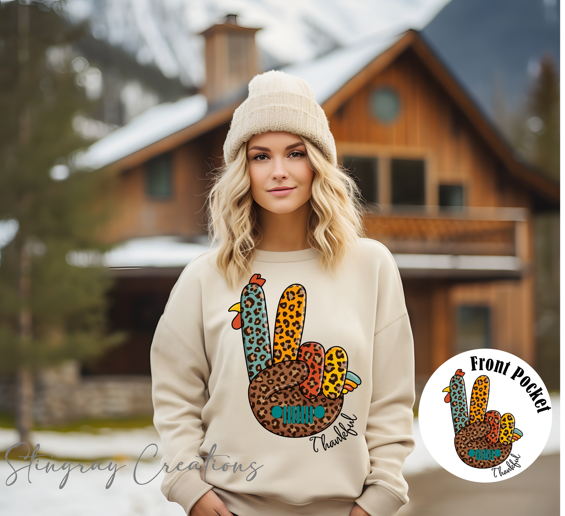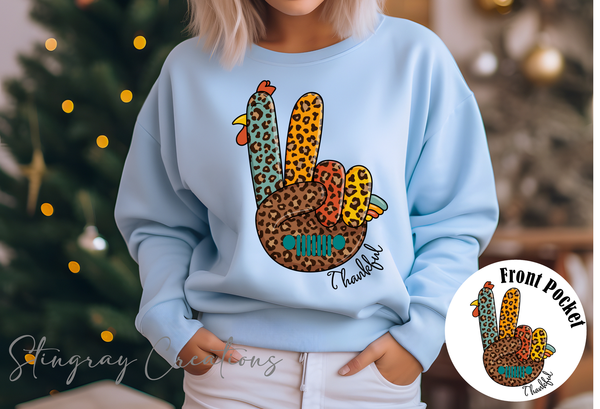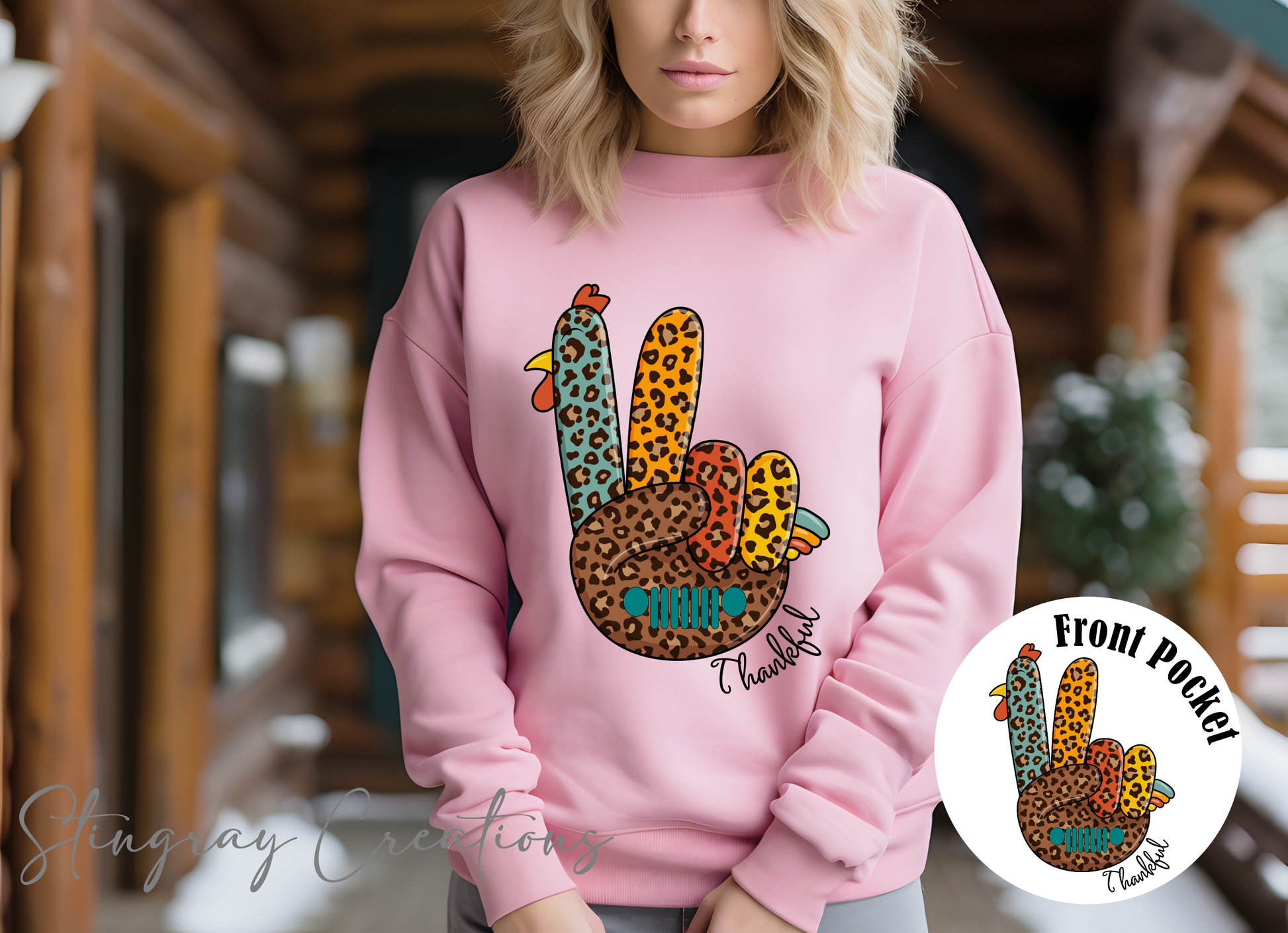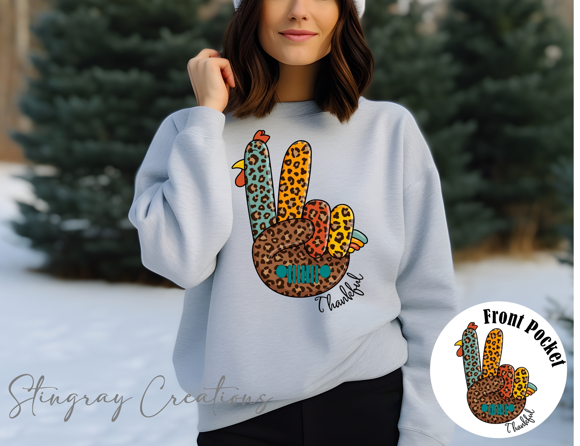 Leopard Print Thankful Jeep Wave Crewneck Sweatshirt