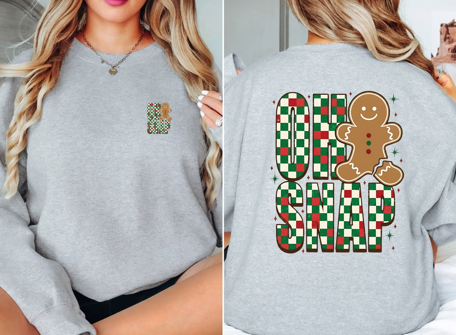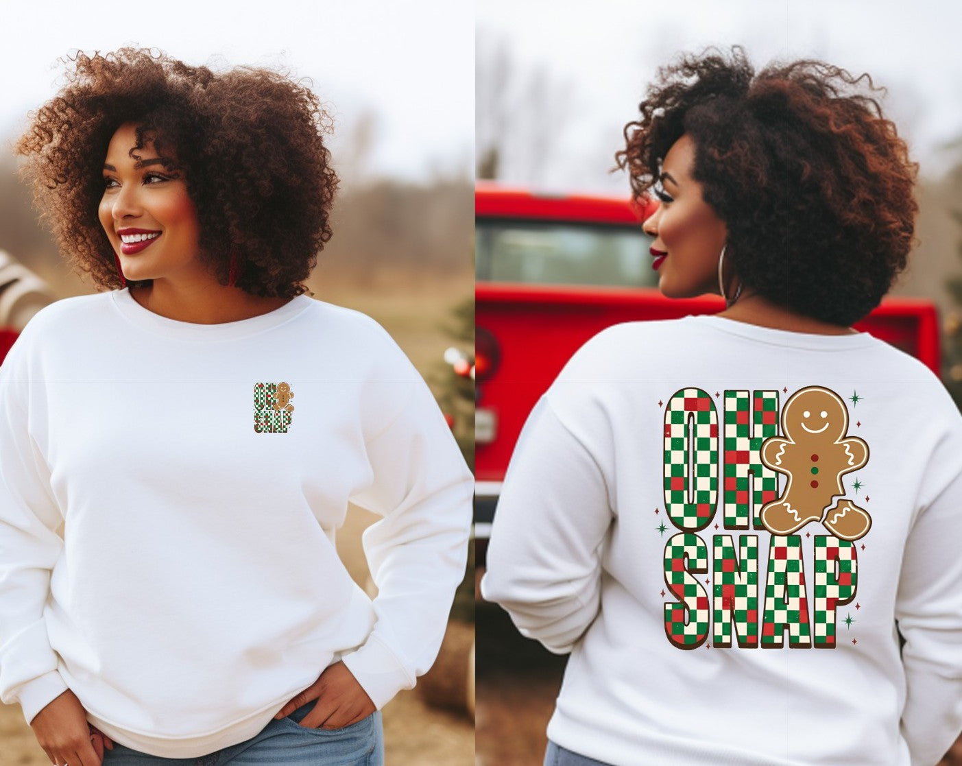 Bring some extra holiday cheer to your holiday season with our OH SNAP Sweatshirt or T-shirt! This adorable sweatshirt or T-shirt features a festive “Gingerbread Christmas” design.