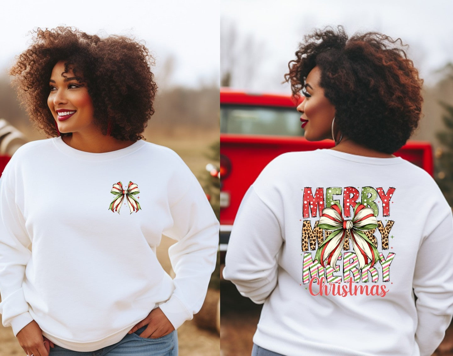 Bring some extra holiday cheer to your holiday season with our Merry Merry Christmas Sweatshirt or T-shirt! This adorable sweatshirt or T-shirt features a festive “MERRY MERRY MERRY Christmas” design.