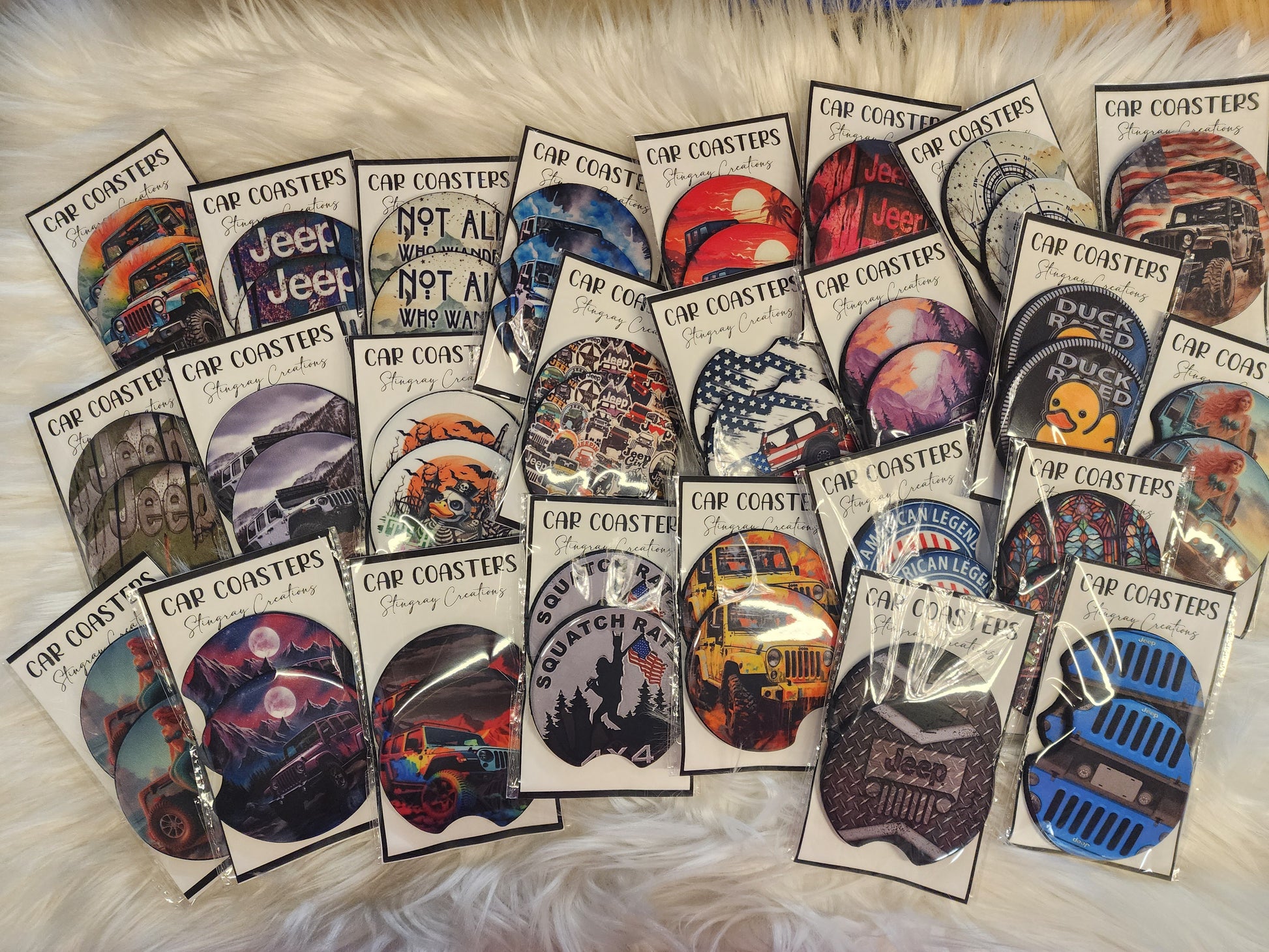 These Neoprene Car Coasters are the perfect addition to your car interior. With their moisture-absorbing qualities, your drink will never leave a mark on your car cup holders. And when it's time to clean, just toss them in the wash for an easy cleanup. Keep your ride clean and stylish with our Neoprene Car Coasters.