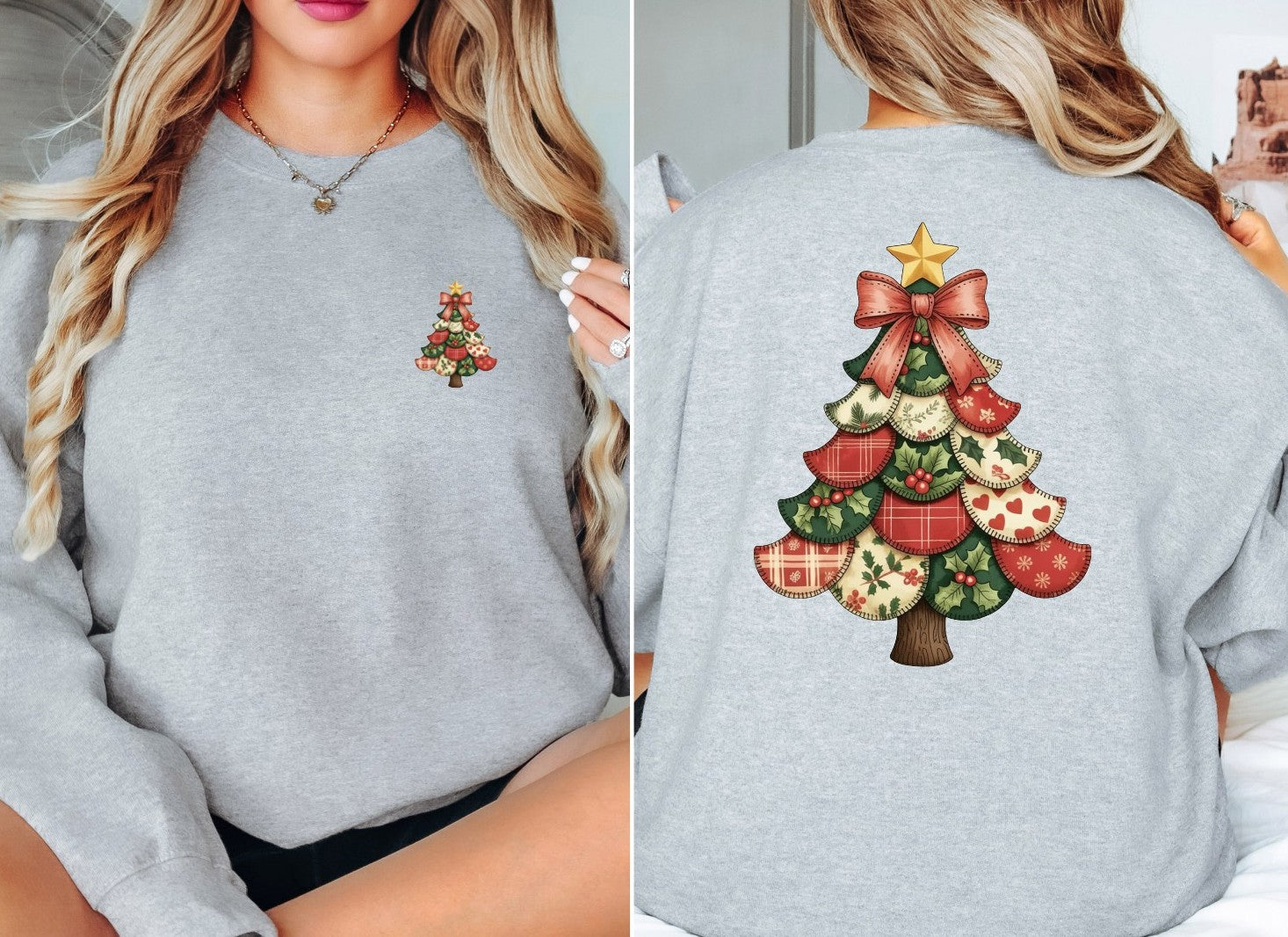 Bring some extra holiday cheer to your holiday season with our Patchwork Christmas Tree Sweatshirt or T-shirt! This adorable sweatshirt or T-shirt features a Quilted Patch style Christmas tree design.