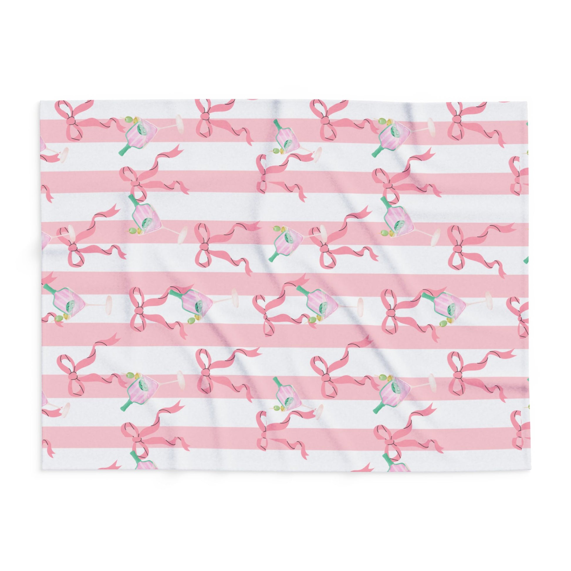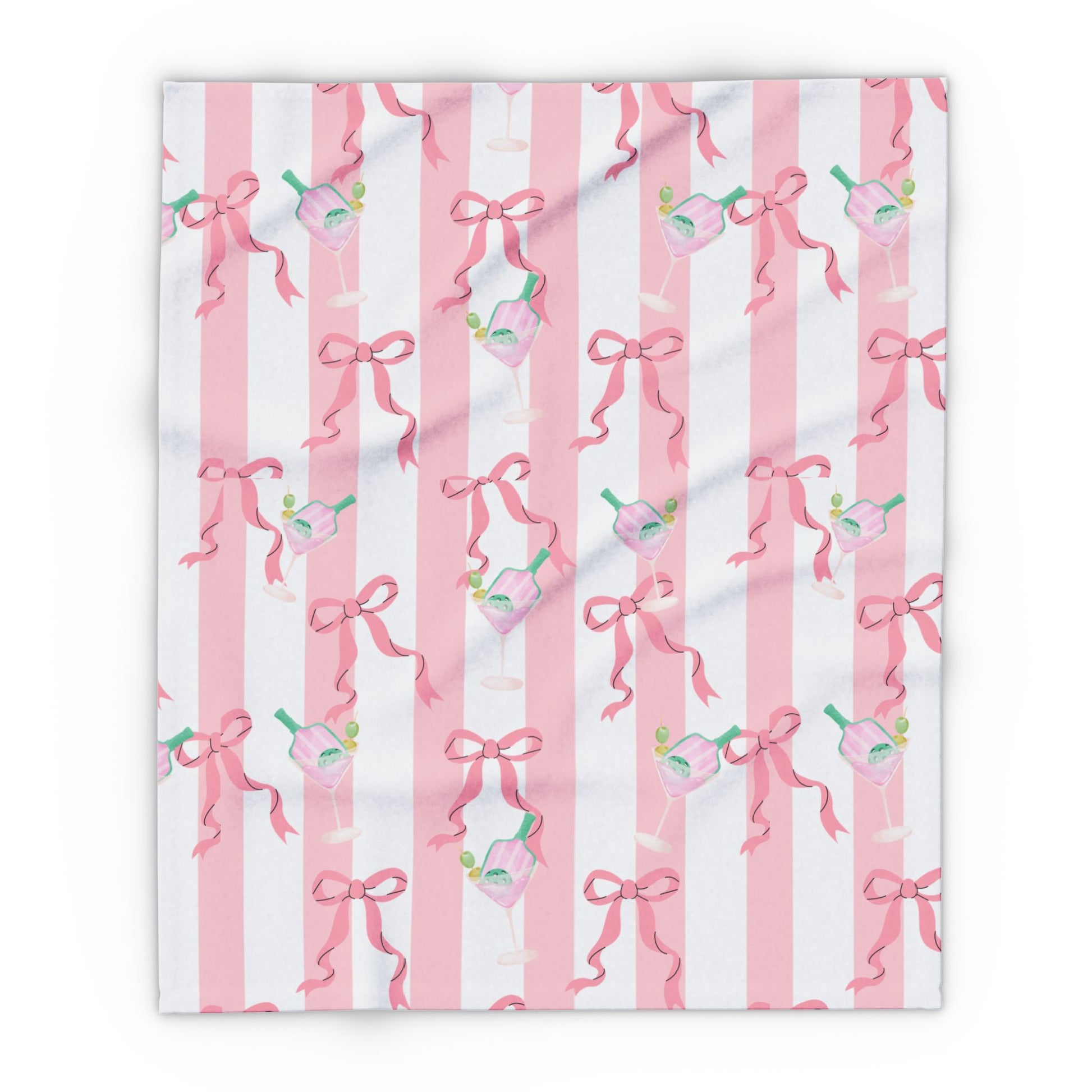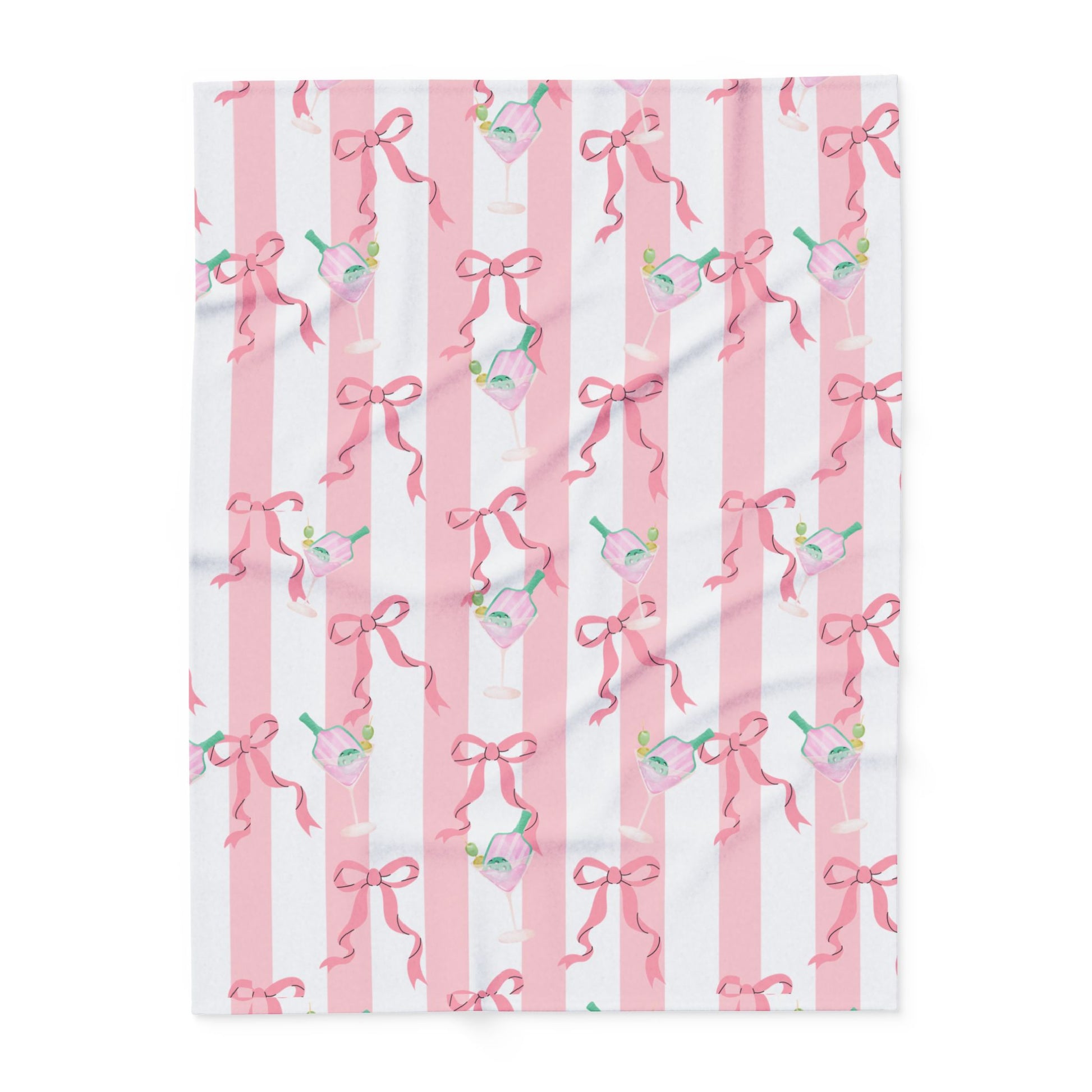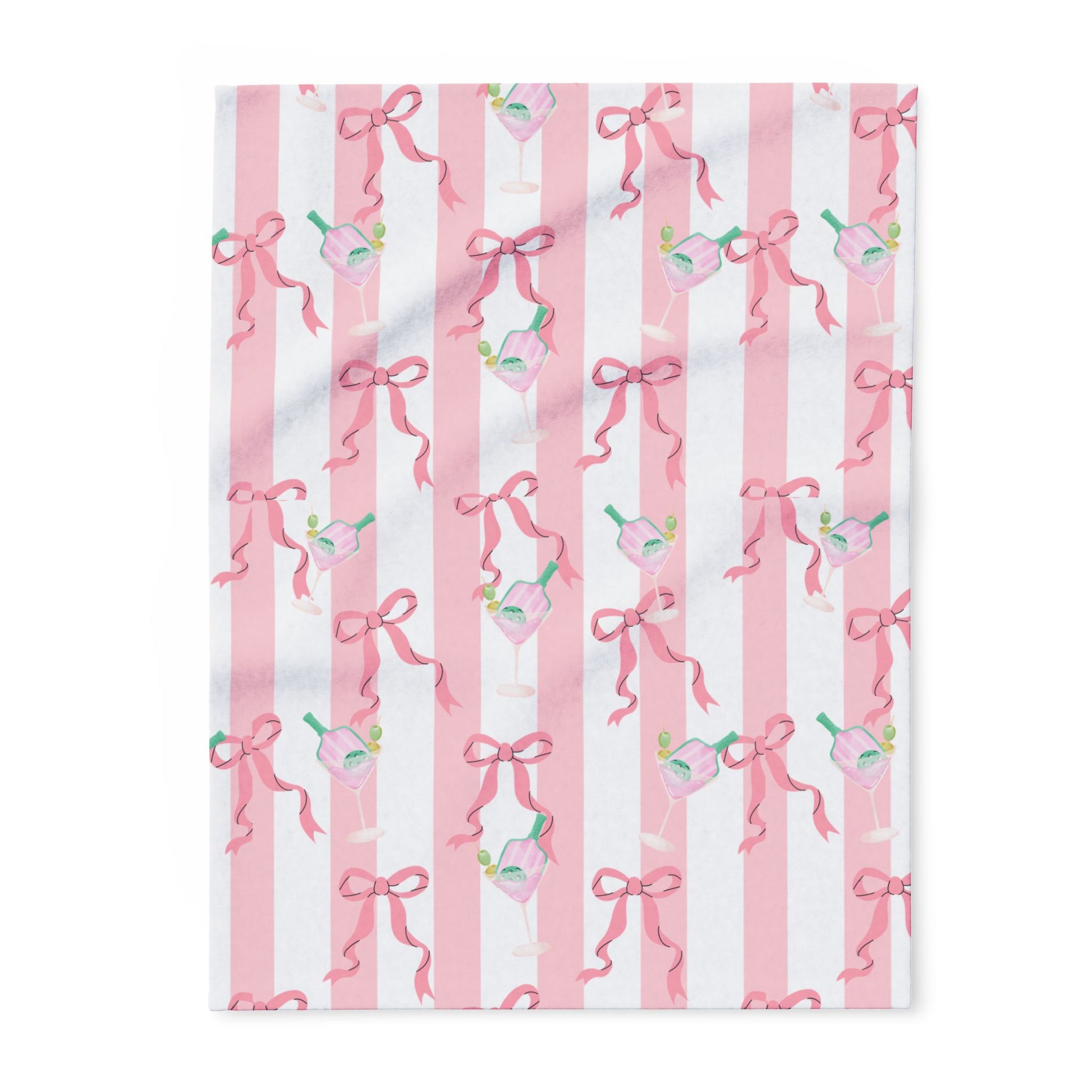 Add a touch of playful glamour with our Pink Martini Nights. This chic pattern features elegant martini glasses filled with striped pink bottles and olives, set against bold black-and-pink stripes and adorned with dainty pink bows. Perfectly balancing sophistication and fun, this design feels ready for a night out in style.