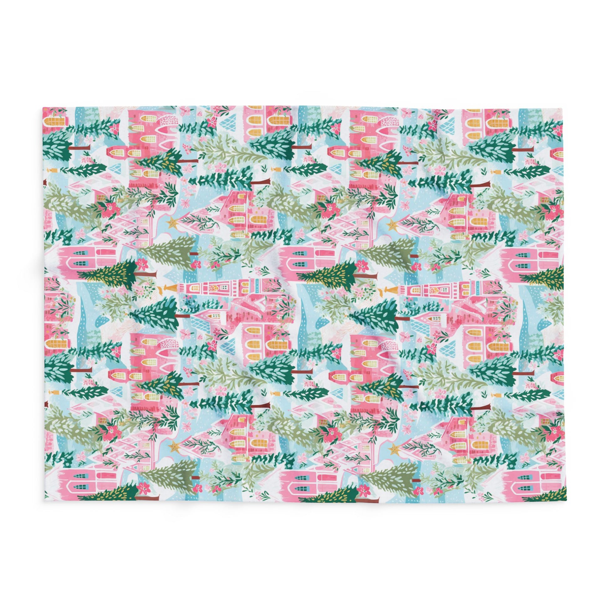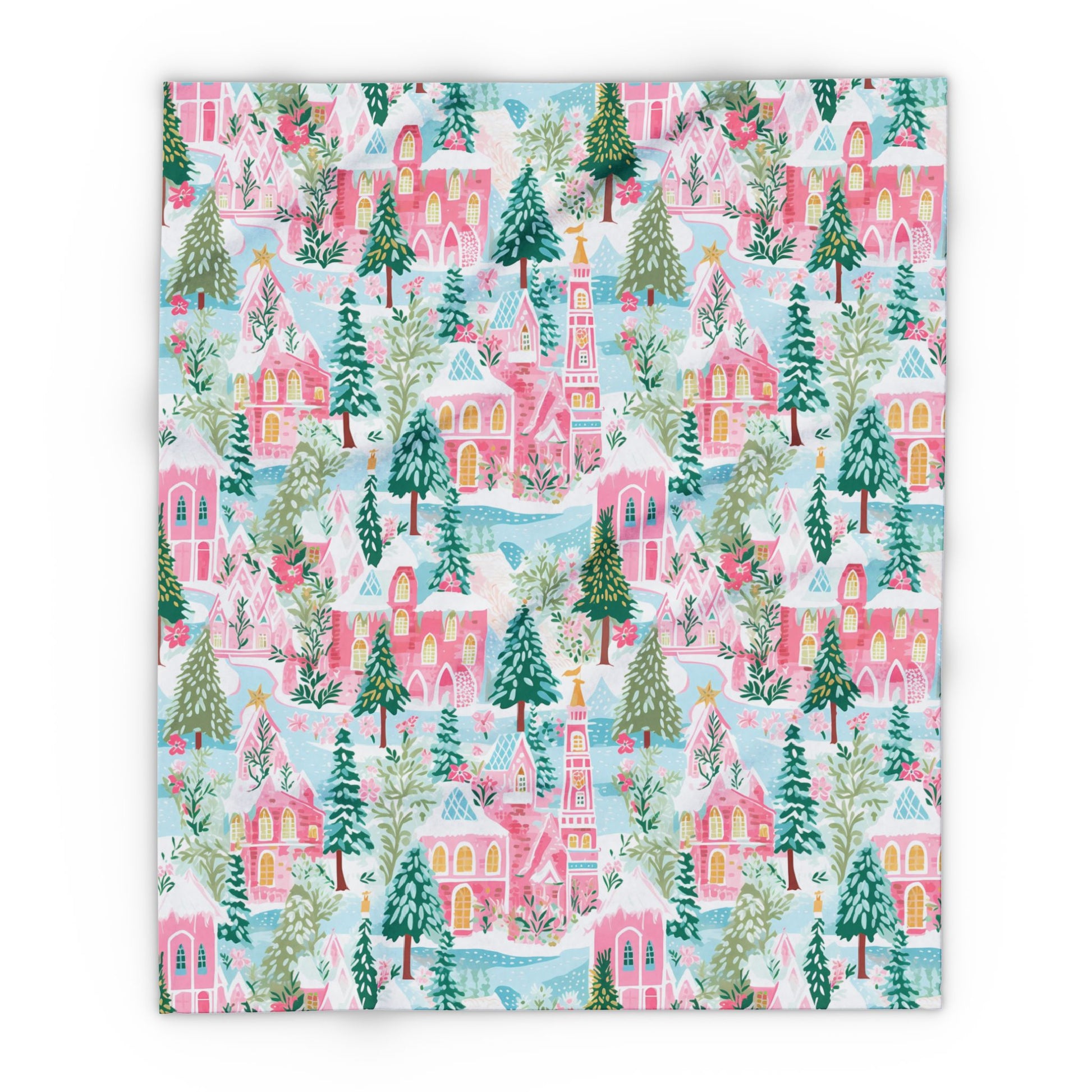 With its soft pastel palette of pinks, mint greens, snowy whites, and pops of gold, this design is ideal for festive blankets, holiday décor, seasonal apparel, or gift wrap. Whether you’re decorating your home or creating cozy gifts, it brings a magical and elegant twist to Christmas traditions.