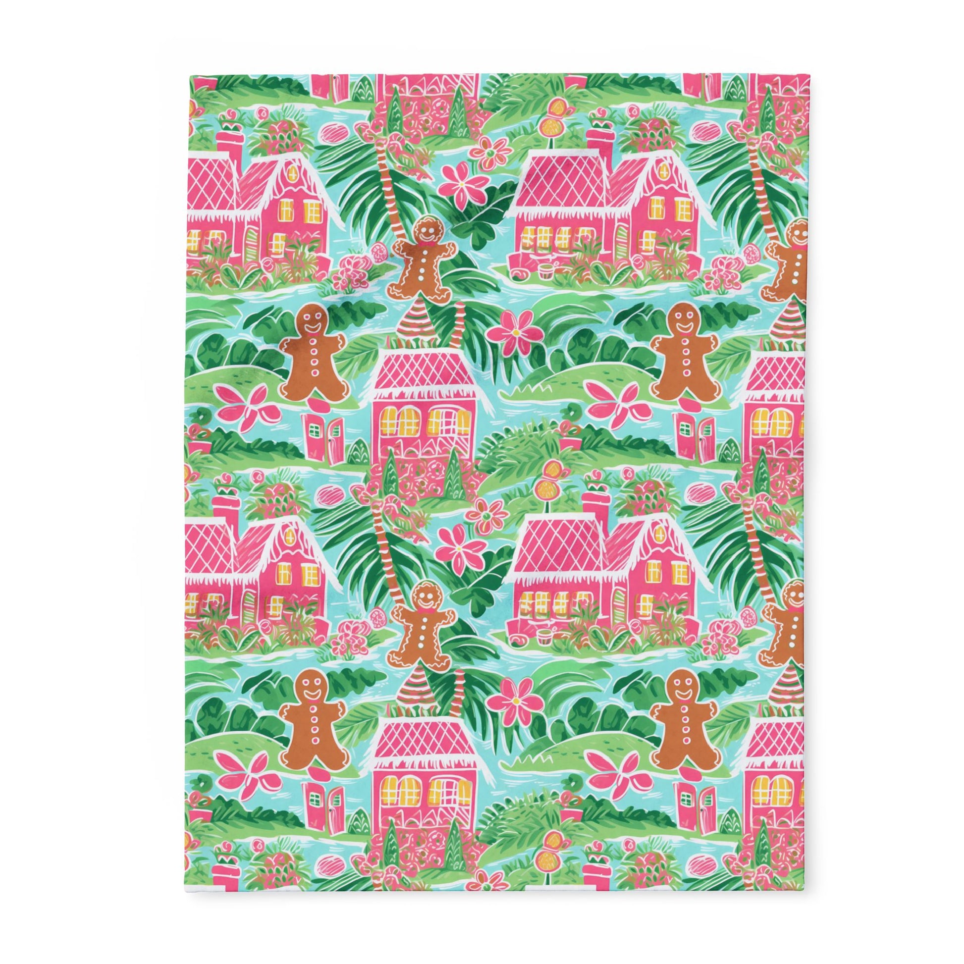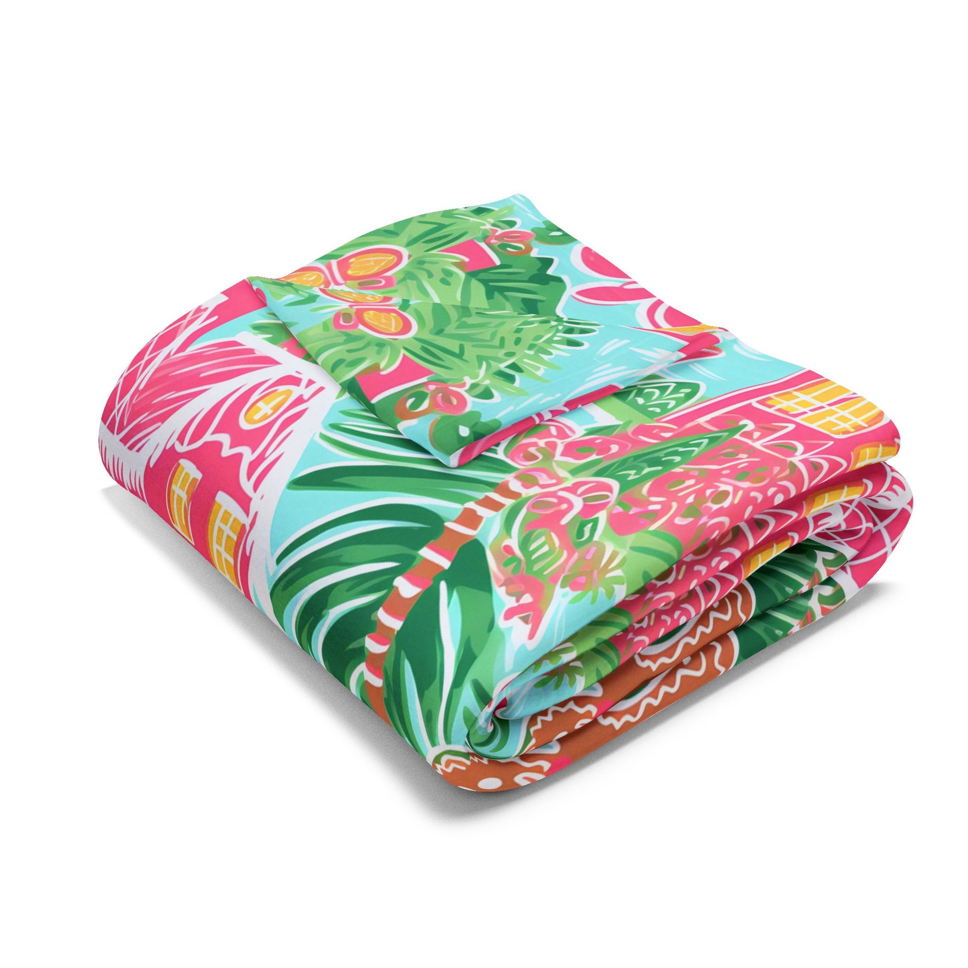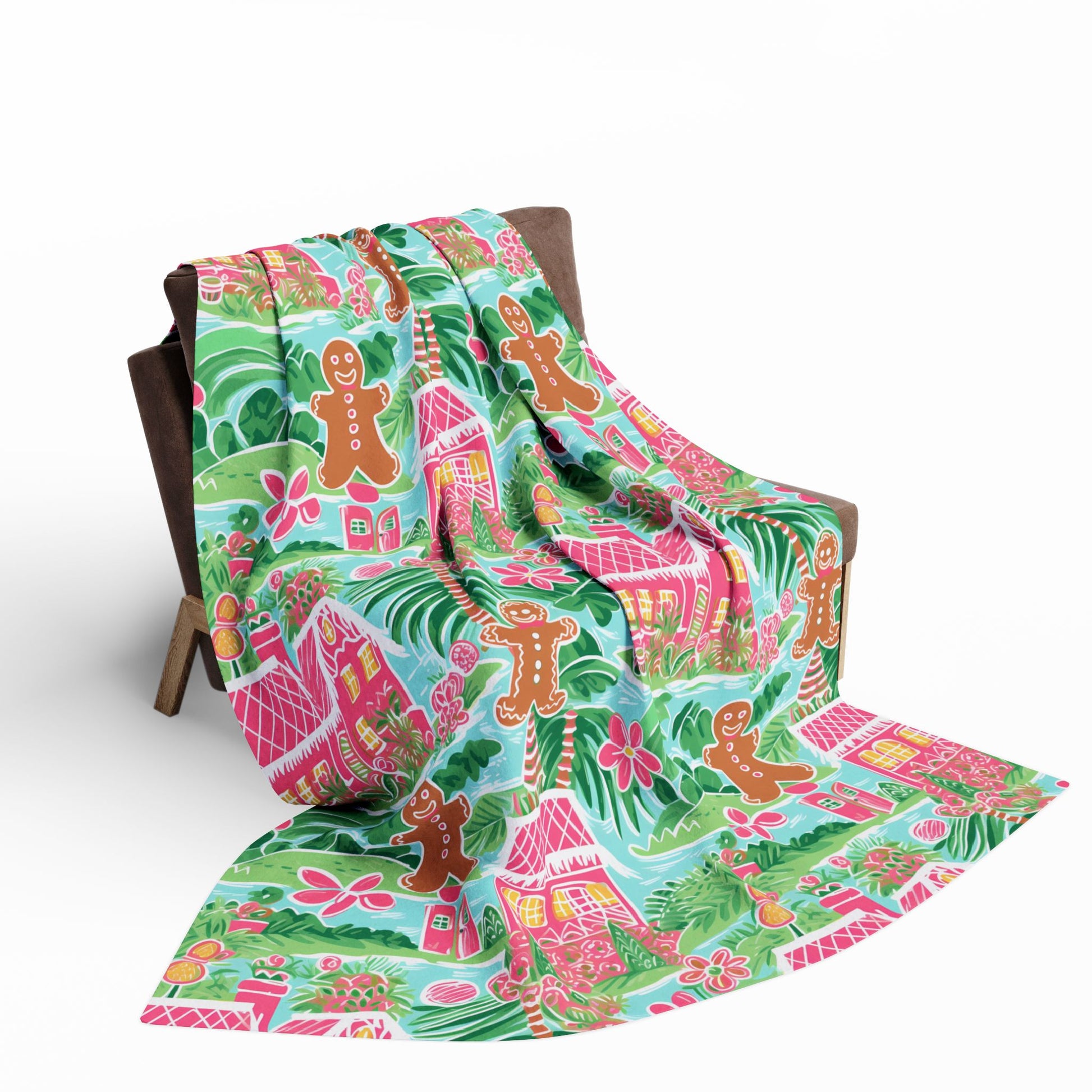 Perfect for beach lovers, coastal homes, or anyone who wants a fun and colorful holiday vibe, this design is ideal for blankets, décor, apparel, or seasonal gifts. With its bold pops of pink, green, and aqua, it’s a fresh take on Christmas that feels like a holiday getaway.