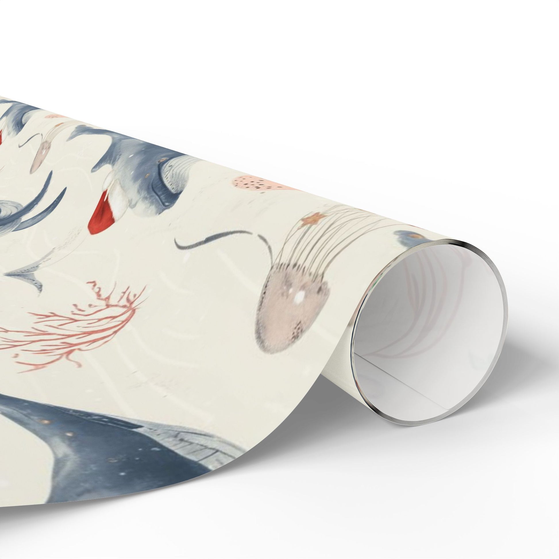 Our Under the Sea Christmas Wrapping Paper is the perfect way to bring coastal cheer to your holiday gifts. Featuring adorable whales in Santa hats, playful jellyfish, and colorful coral, this whimsical ocean-inspired design blends seaside magic with festive holiday spirit.