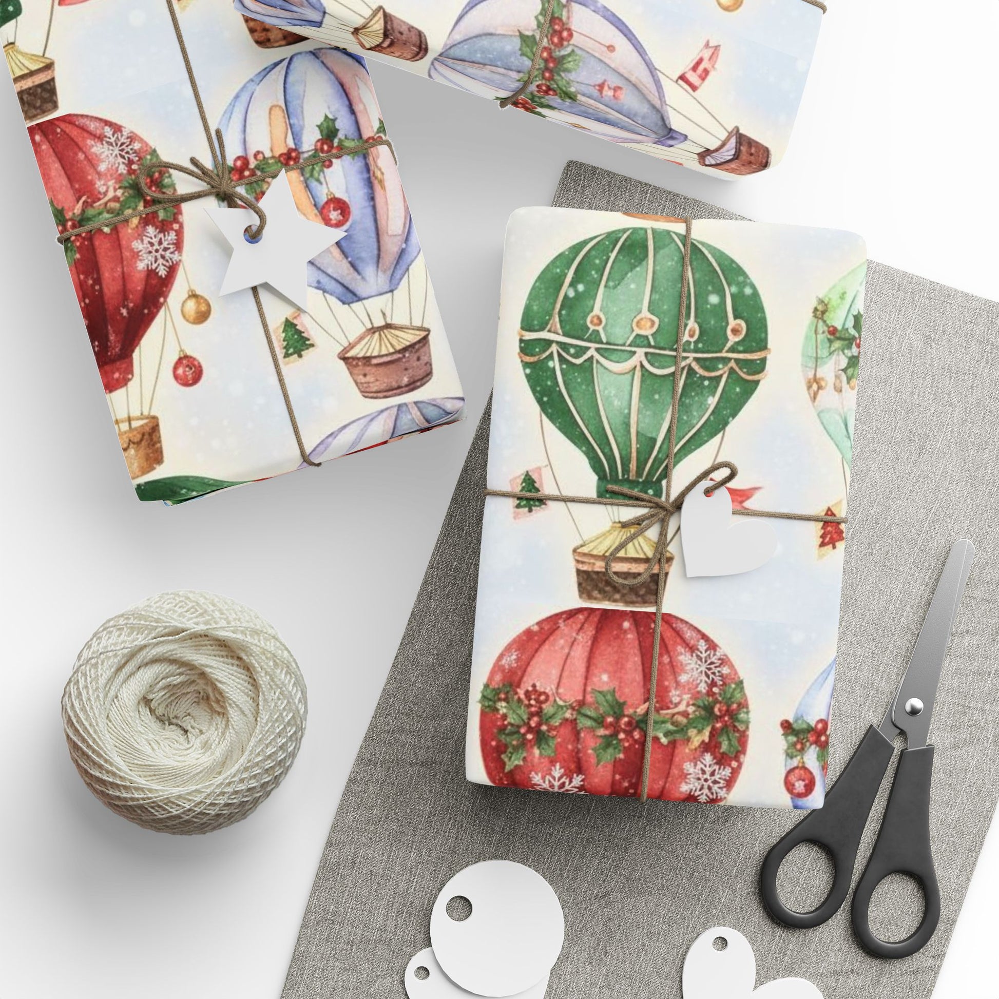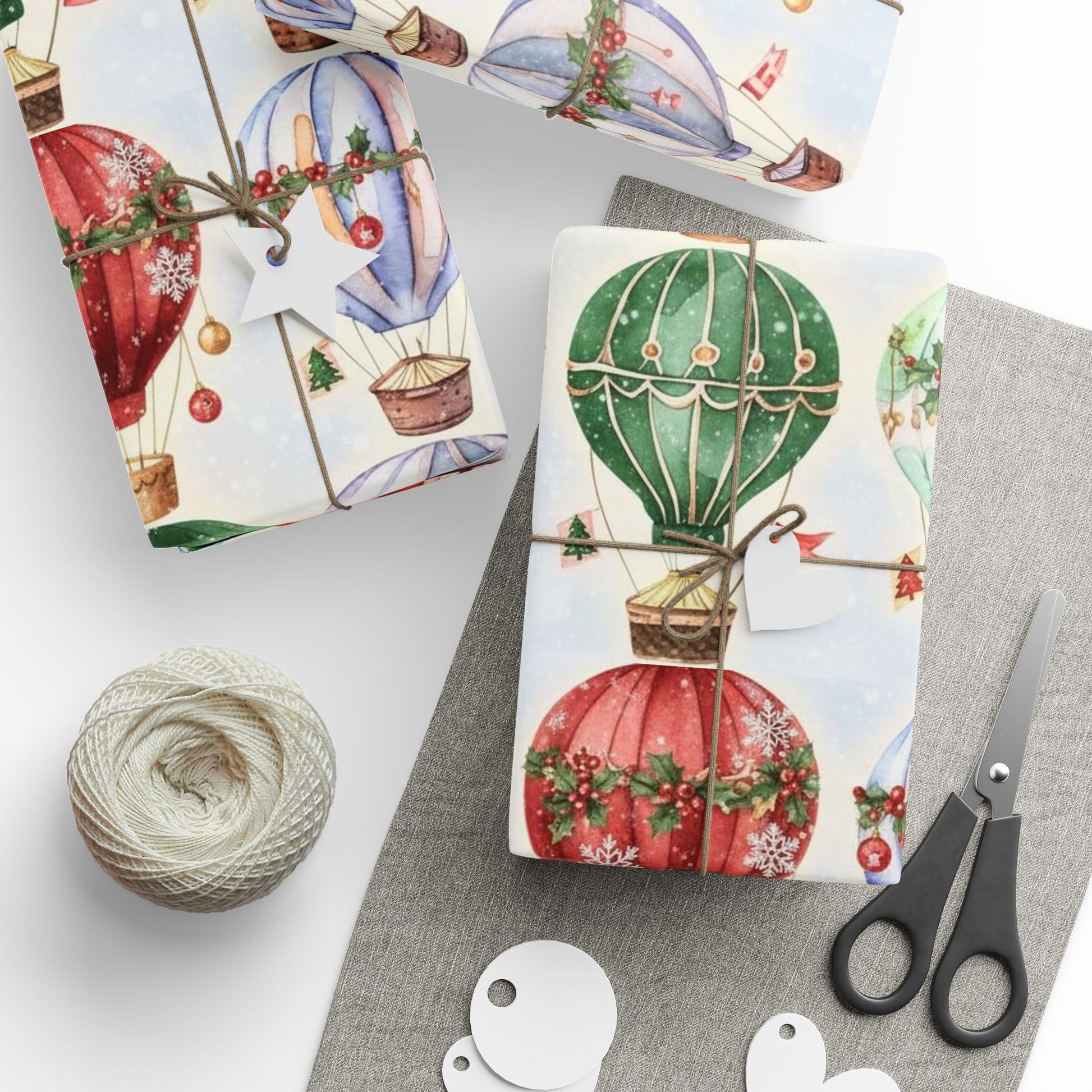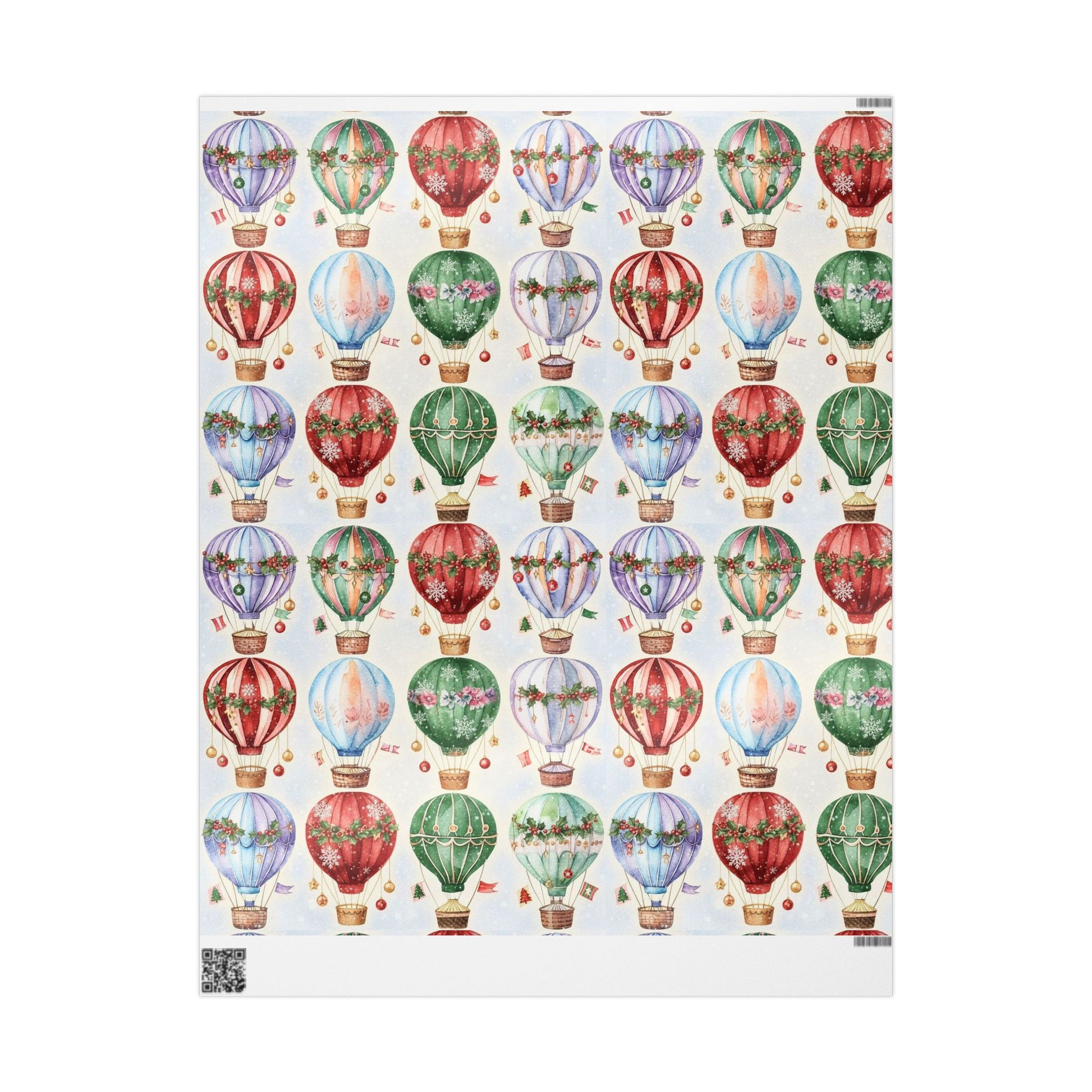 🎄 Festive Hot Air Balloon Wrapping Paper – Holiday Sky Adventure 🎄