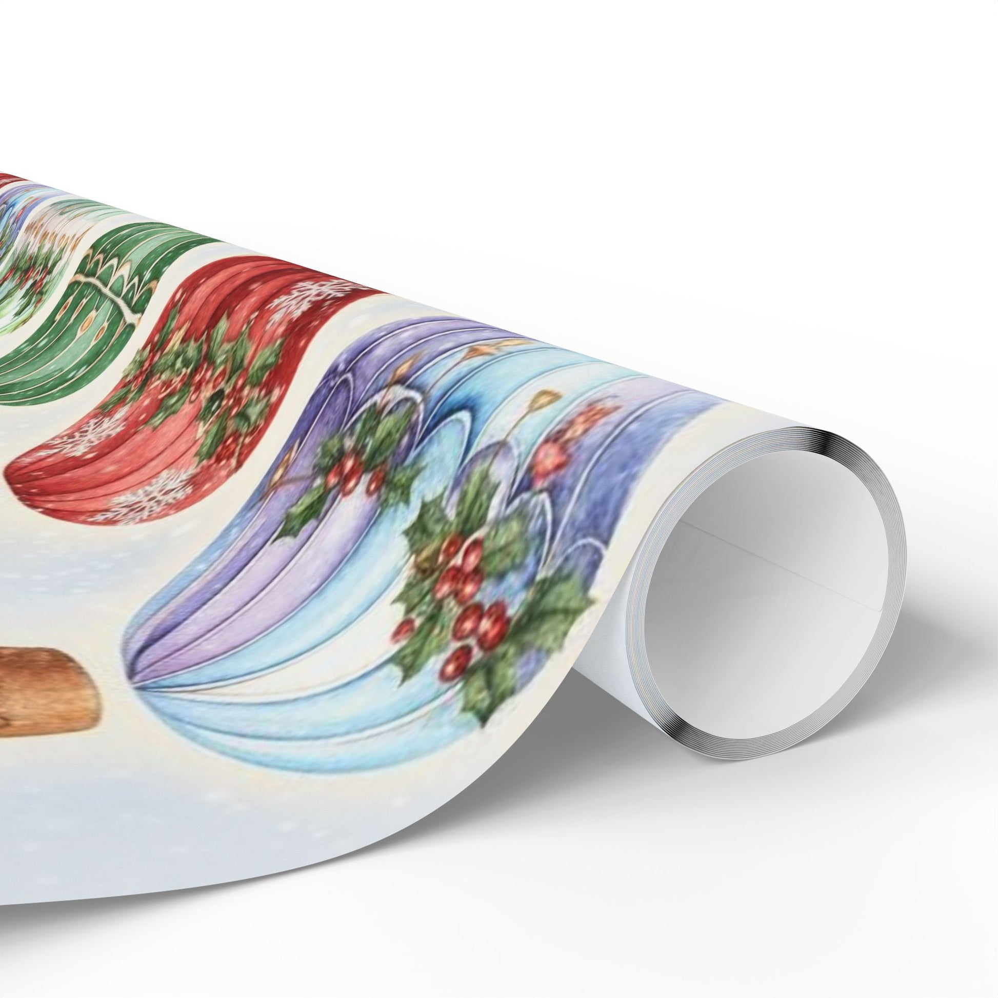 Send your gifts soaring this season with our Festive Hot Air Balloon wrapping paper! Decorated with watercolor balloons trimmed in holly, snowflakes, and garlands, this design captures the magic of Christmas lifted high above snowy skies. Perfect for adding a touch of whimsy and wonder to your holiday presents.